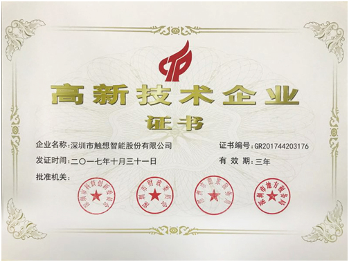 觸想智能順利通過國家級高新技術(shù)企業(yè)認(rèn)定,證實(shí)了公司在研發(fā)投入、核心自主知識產(chǎn)權(quán)、科技成果轉(zhuǎn)換、研發(fā)團(tuán)隊(duì)實(shí)力等的綜合實(shí)力,同時(shí)也體現(xiàn)了政府及社會(huì)各界對觸想智能在工控顯示設(shè)備行業(yè)辛勤耕耘的認(rèn)可。