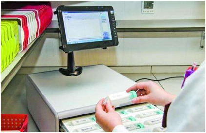 護(hù)士通過指紋驗(yàn)證打開智能藥柜,根據(jù)系統(tǒng)指示取出分裝好的藥,直接對應(yīng)發(fā)給每一位病人。